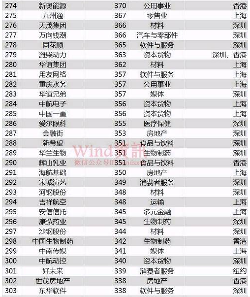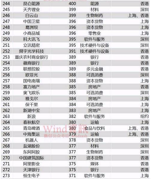 注 :部分公司在中國大陸 、香港 、美國等地同時上市