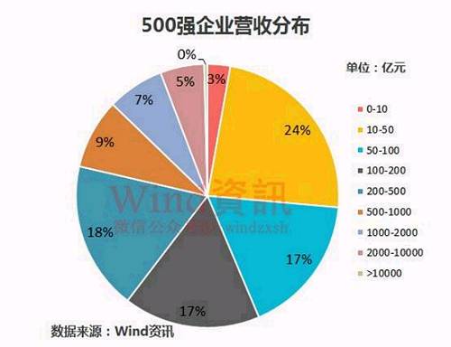 近六成500強企業的營業總收入200億元以下 ,也有約一成企業營收超過1000億元 。